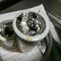 修正したあと電源ON、ヒユーズ断。特に匂い、煙なし音もなくとんだ。抵抗が焼ける等のほうがわかりやすいのだが。IF基板をはずしても再度断。特にいじった個所を重点チェック、現在も各端子でのチェック、電源系基板調査・・長くなりそうだ・・・。